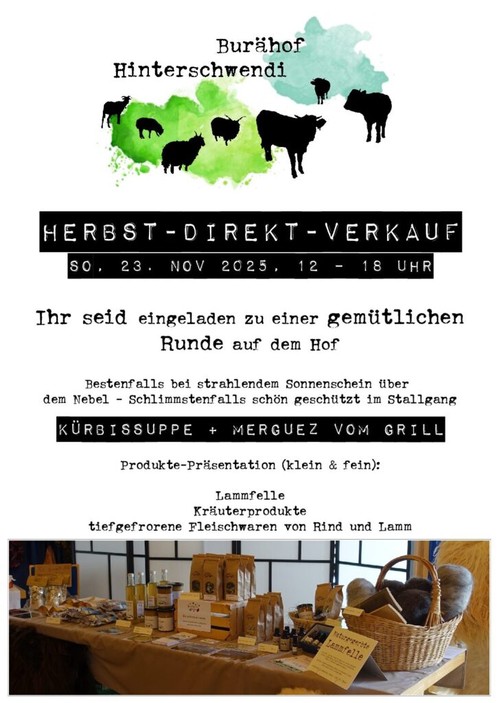 Darum komm‘ doch bei uns vorbei, am Sonntag, 23. November 2025 zu unserem Herbst-Direktverkauf.